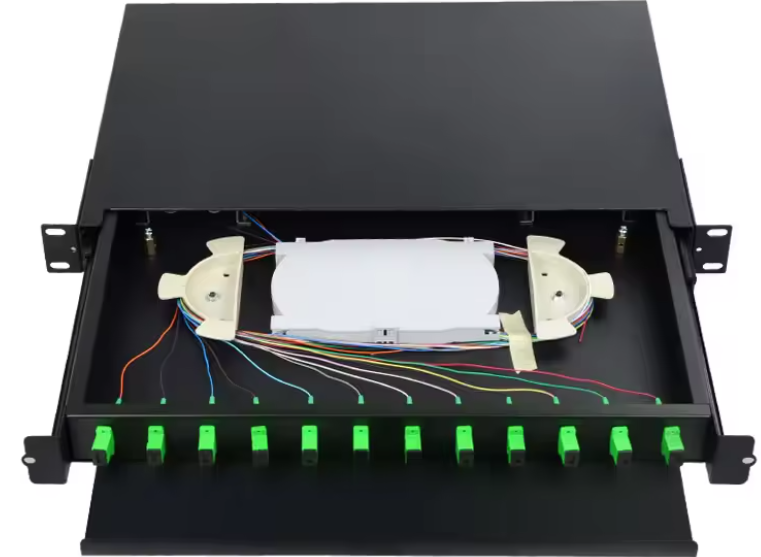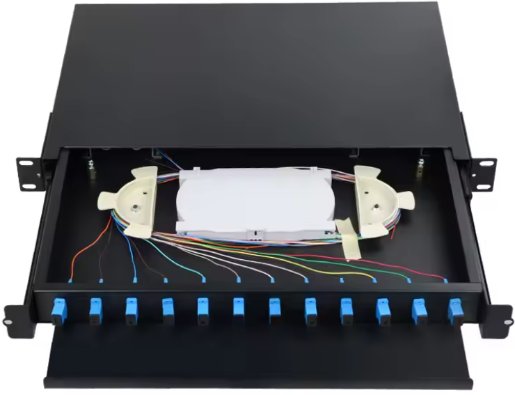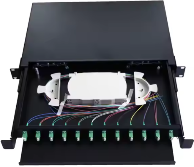 12 PORTS ODF PATCH PANEL OPTICAL DISTRIBUTION FRAME RACK MOUNT 19 INCH STEEL DRAWER TYPE SC UPC SC APC LC UPC LC APC SINGLEMODE SM MULTIMODE MM