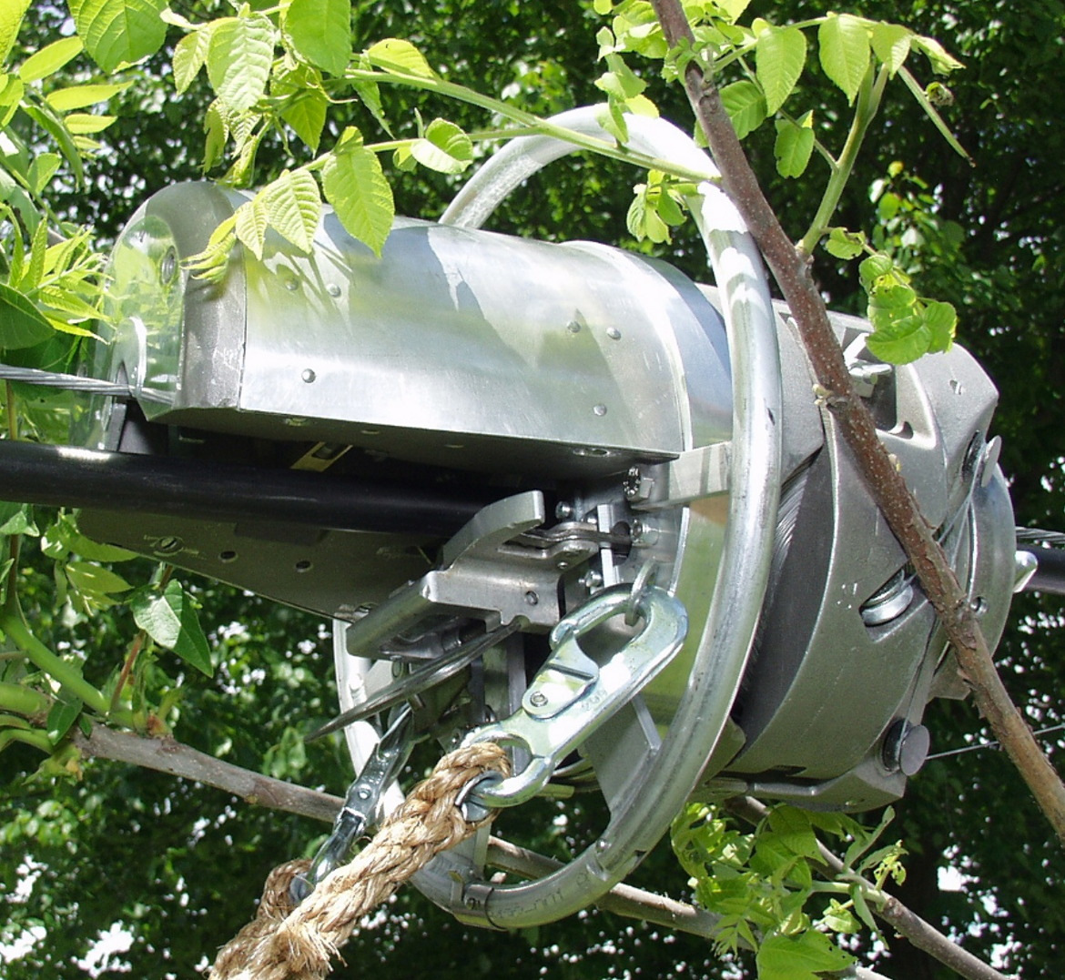 - Will lash any single or multiple aerial cables up to 3 in. (76mm) diameter across on any suspension strand from 1/4 in. (6mm) to 7/16 in. (11mm). A factory modification will allow the lasher to accommodate 1/2 in. (12.7mm) strand if necessary.