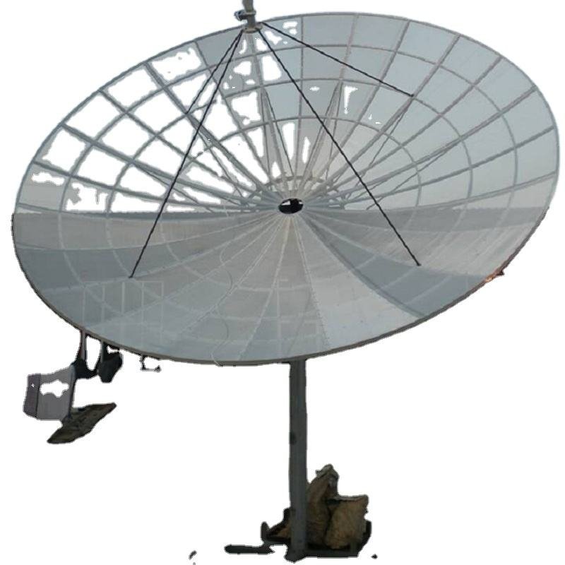 The dish kit is supplied with a 3 or 4 leg feed support, all assembling parts and 6mm or 2.8mm square mesh, which can used up to 6cm band (max 6Ghz), option is 2.8m galvanized wire mesh, max frequency is 11GHz.